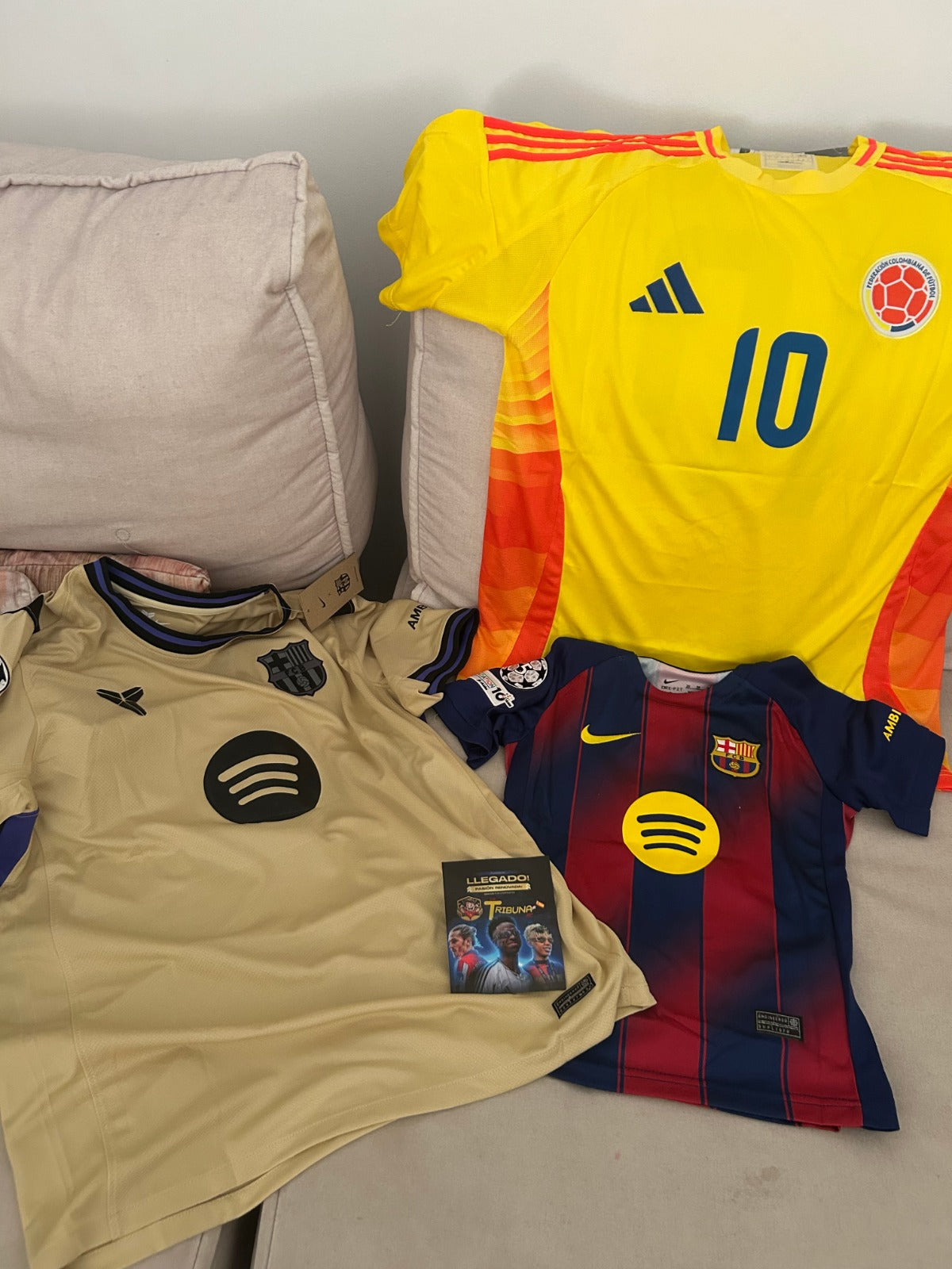 Tu camiseta cuidadosamente embalada, con protección de envío y, si elegiste personalización, llegará con nombre, número y parches aplicados + 2 regalos sorpresa